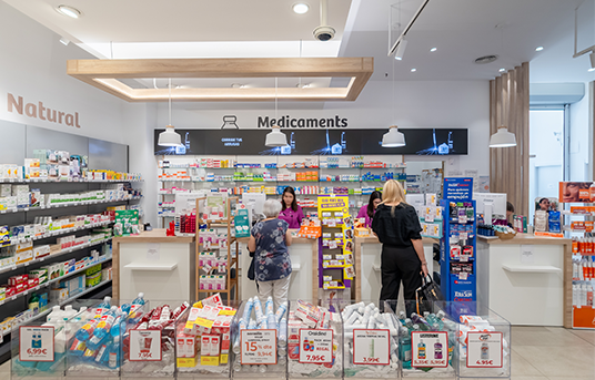 Soluciones de disposición para potenciar su farmacia, desde la vitrina hasta el mostrador.